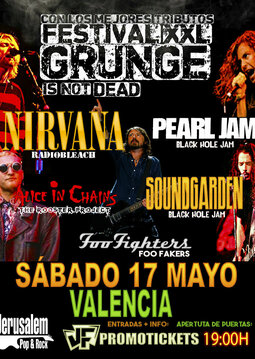 ¡No te pierdas el increíble homenaje a Nirvana, Pearl Jam, Foo Fighters, Soundgarden y Alice In Chains en el gran evento que se llevará a cabo el 17 DE MAYO EN LA SALA JERUSALEM DE VALENCIA Disfrutarás de los mejores tributos a estas icónicas bandas del grunge.