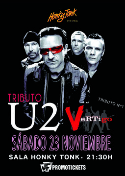 Sumérgete en una experiencia única que te transportará a los mejores momentos de U2. Vértigo no solo reproduce las canciones de U2 con una precisión impecable, sino que también captura la esencia y el espíritu de una de las bandas más icónicas de todos los tiempos. No te pierdas la oportunidad de revivir éxitos como "With or Without You", "Beautiful Day", "One" y, por supuesto, "Vertigo". Si eres fan de U2 o simplemente un amante de la buena música en vivo, este tributo es un evento que no puedes dejar pasar. ¡Nos vemos en la Sala Honky Tonk!