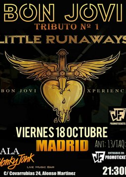 ¡No te pierdas el mejor tributo a Bon Jovi en Madrid! La banda tributo Little Runaways te hará revivir los grandes éxitos de la legendaria banda de rock en una noche inolvidable en la sala Honky Tonk.