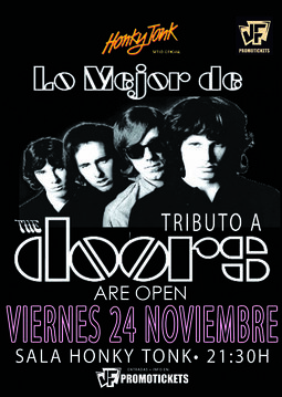 Tras colgar el cartel de "no hay entradas" en sus dos últimos conciertos por la sala... Vuelve a la Honky Tonk el mejor tributo a THE DOORS – ARE OPEN con con más de 1h de concierto donde repasarán todos los éxitos de la banda liderada por Jim Morrison en un directo impecable que no te dejará indiferente!!!