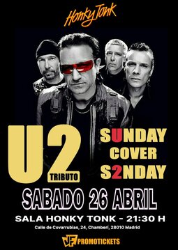 No te pierdas el espectacular tributo a la legendaria banda irlandesa U2! La banda tributo, Sunday Cover Sunday, llevará su apasionante interpretación de los éxitos de U2 a la Sala Honky Tonk de Madrid el sábado 26 de abril a las 21::30 de la noche.